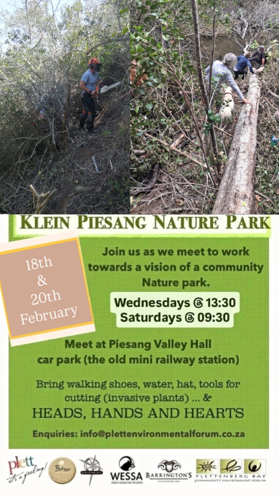 Volunteers have been hard at work in the Klein Piesang Nature Park – so what is it all about? We asked Rudi Martin, Chairman of the Plett Environmental Forum this question. The Forum was appointed by Municipality as the custodian of this area, a unique piece of Public Open Space long neglected.