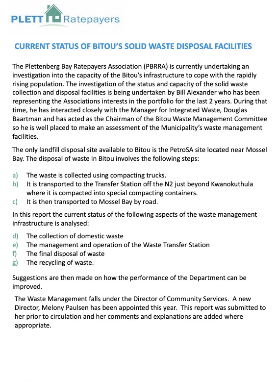 Frequent breakdowns of compacting trucks, TLBs, and hook-lift vehicles lead to waste stockpiles at the transfer station, exacerbated by lengthy procurement delays for repairs that can exceed a month. The PetroSA landfill in Mossel Bay, Bitou’s sole disposal site, closed in early 2023, forcing reliance on regional alternatives amid high transport costs averaging R891 per ton. Poor site management allows illegal dumping of building rubble and bulky waste, while recycling captures only 15% of domestic waste due to limited separation at source and dysfunctional staff discipline.